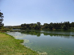 O passado domingo foi passado no meu Alentejo. Já há anos que não passava pelo Alentejo em Agosto. Tinha-me esquecido de como o calor pode ser abrasador por aqueles lados. O passeio foi pelo meu querido concelho de Mora mais precisamente no Parque Ecológico do Gameiro, um local muito agradável e aonde se localiza o Fluviário de Mora, o primeiro grande aquário de água doce da Europa onde podemos encontrar inúmeras espécies de água doce algumas em vias de extinção. A intenção de ir até ali era praticar canoagem no nosso caiaque insuflável. Andámos cerca de 2 horas no açude mas valeu a pena. Dentro de água consegue ver coisas que dificilmente se descobriria por terra. Há locais onde apenas se ouvia os passarinhos. No dia seguinte, eu estava cheia de dores nas costas mas valeu a pena.