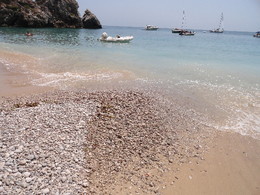 Já lá tinha estado há uns anos no âmbito de uma actividade de canoagem. Saímos de Sesimbra e fomos remando até lá com muito dificuldade porque estava muito vento. Neste pedaço do paraíso, não estava quase ninguém. Por lá descansámos e até tivemos direito a um lanche. Há uns meses, fomos descobri-la, de novo, mas desta vez por terra. Nem sei qual é a pior maneira de lá chegar, remar ou descer aquele caminho íngreme. Foi em Maio e a praia já tinha mais gente mas, mesmo assim, estava-se lá muito bem. Hoje voltei à Praia do Ribeiro do Cavalo para passar o dia e fiquei estupefacta com a quantidade de gente que estava por lá. Afinal esta praia magnífica já não é um segredo bem guardado. Como é que possível que uma praia à qual se acede apenas de barco (que eram mais que muitos) ou descendo a falésia com dificuldade pudesse estar tão cheia?! Quase que não havia espaço para estender a toalha. Ir à água foi uma aventura quase tão grande como tentar chegar à praia. A beira da água está cheia de seixos de vários tamanhos que tem que se atravessar para nos podermos refrescar. Uma prova dura de que nada se consegue sem esforço. Apesar de tudo, foi um dia bem passado. Aconselho, mesmo com muita gente não deixa de ser agradável.